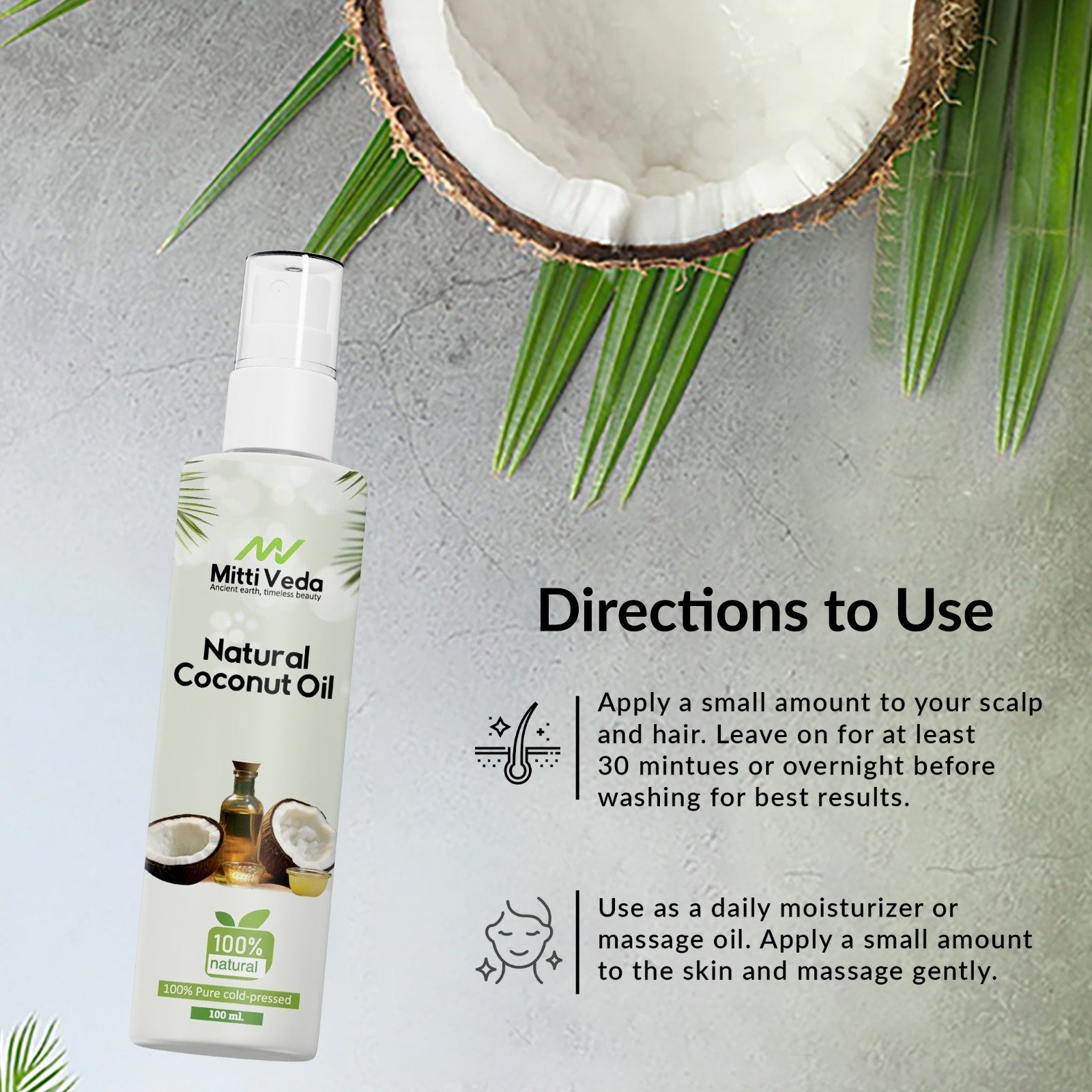 For Hair: Apply a small amount to your scalp and hair. Leave on for at least 30 minutes or overnight before washing for best results.